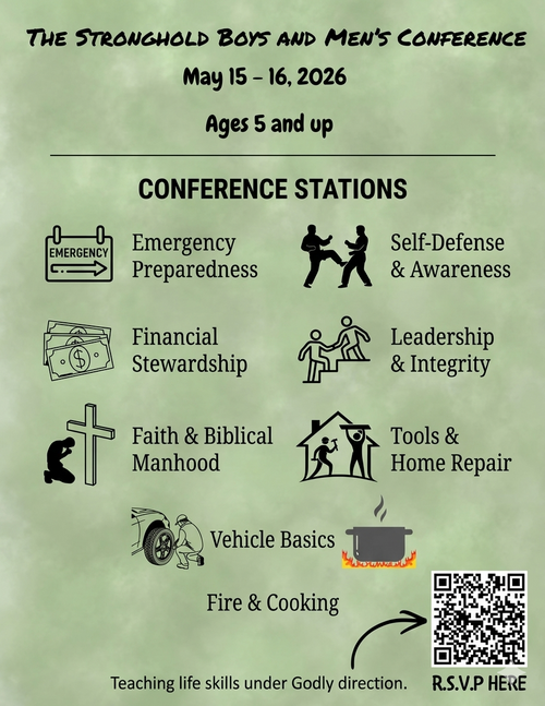 Men, it’s time to prepare ourselves and the boys in our lives for the challenges ahead. The Stronghold Boys and Men's Conference is here, designed for ages 5 and up to learn life skills under Godly direction.